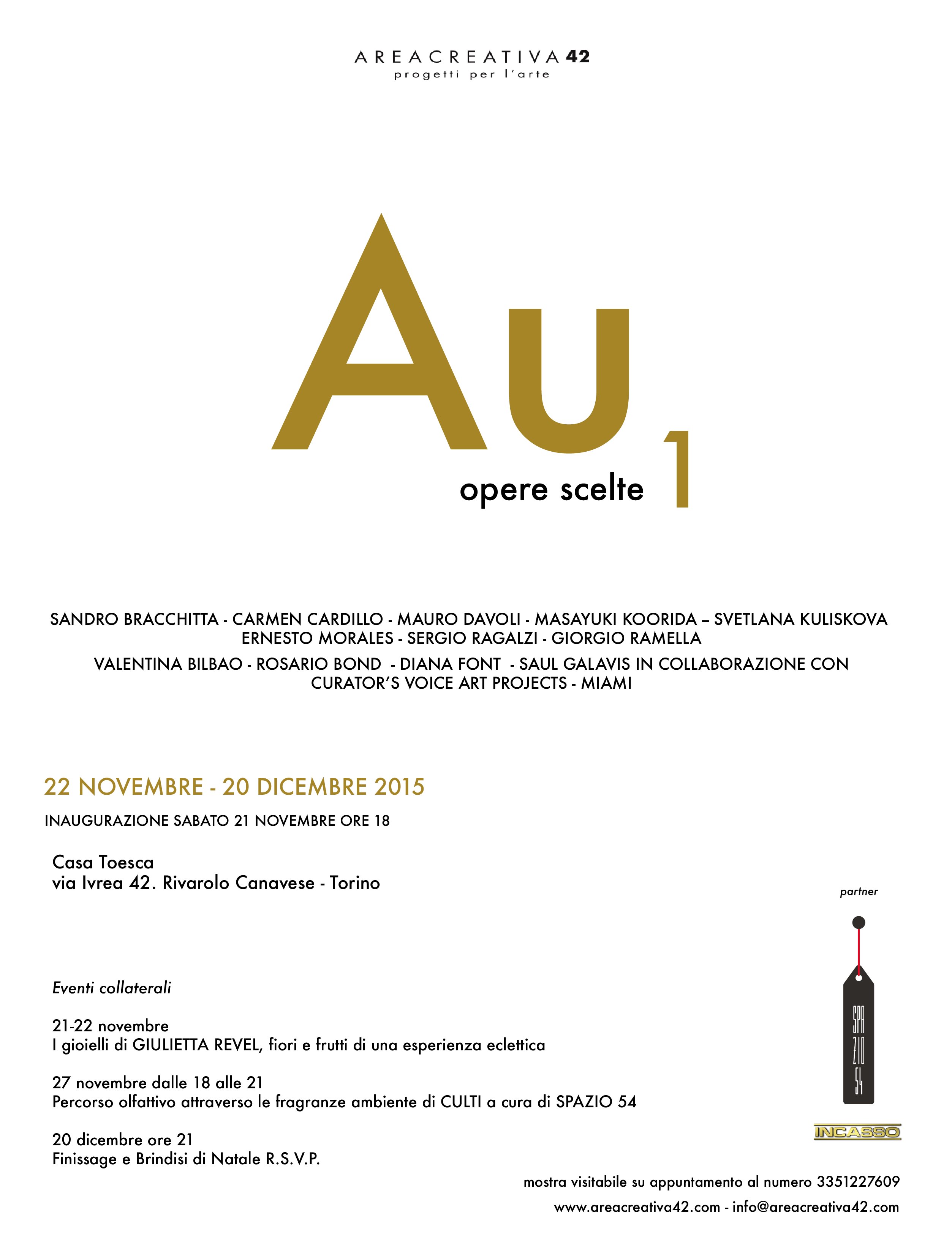AU1 è la mostra che Areacreativa42 propone dal 21 novembre al 20 dicembre, invitando 12 artisti italiani e stranieri a presentare opere legate al tema dell’oro e della vanitas.