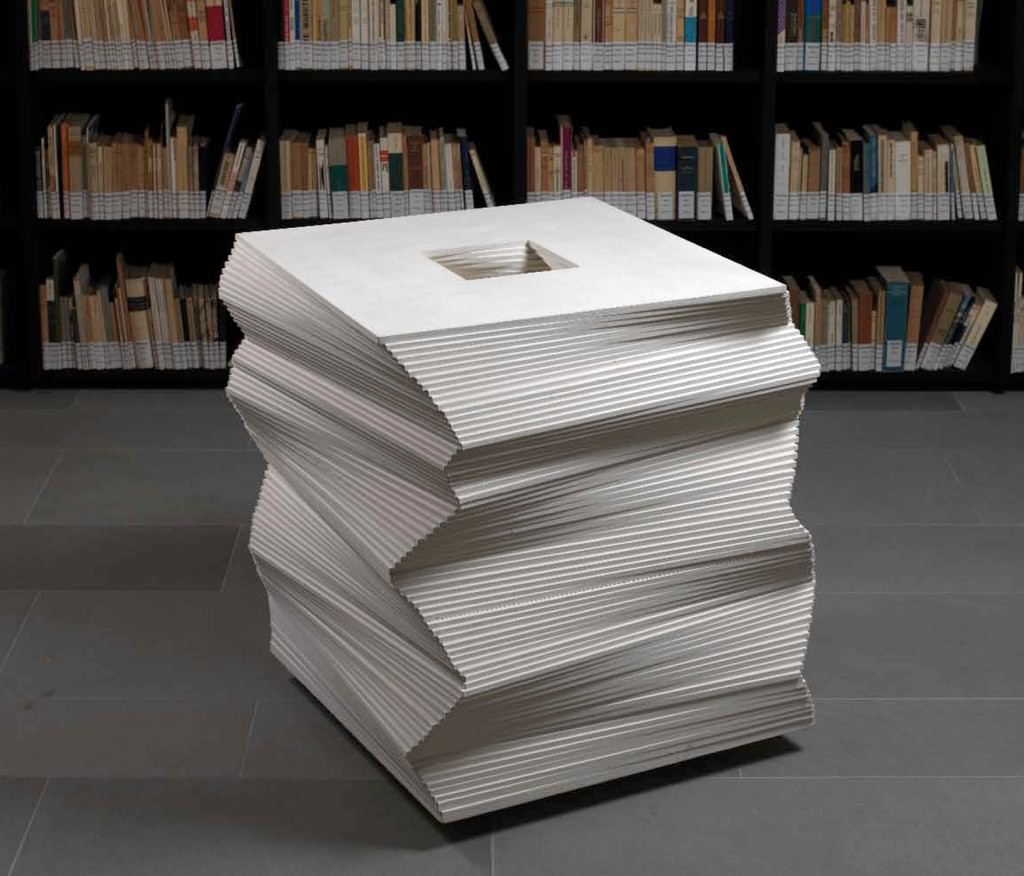 “Il bianco è la forma scelta da Audelio Carrara per la mostra ne’ “Le Stanze” di Trescore Balneario. Qui il bianco è inteso come schermo, attraverso il quale la forma si offre come linguaggio, che lascia intuire un significato sotteso nella scelta stessa della materia utilizzata. Colore di luce che maschera una presenza coperta.