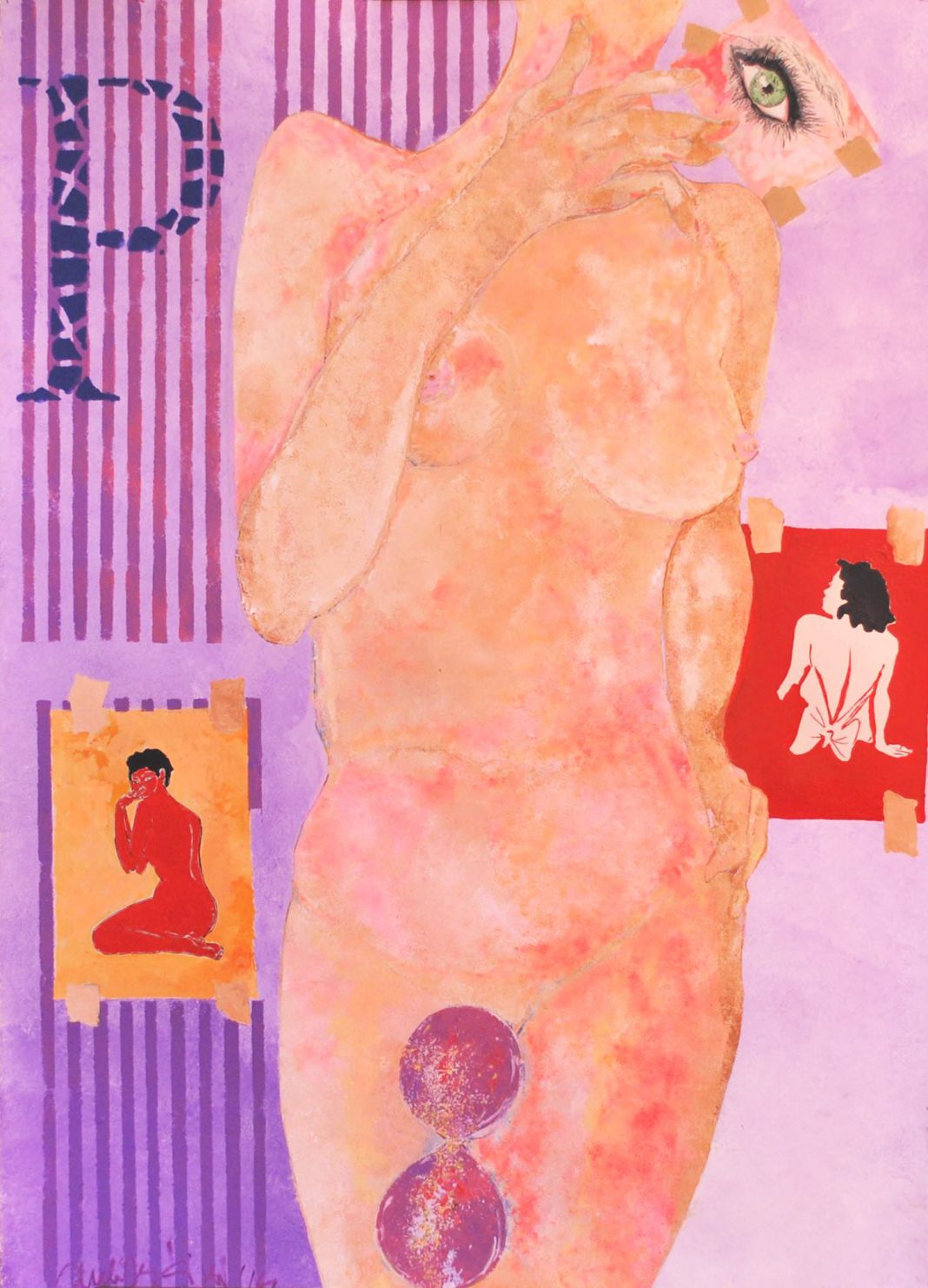 Generalmente, chi si dedica a più forme artistiche finisce per non eccellere particolarmente in nessuna di queste: non è il caso di Pedicini che, invece, restando coerente con la sua ricerca, si esprime sempre al massimo della sua potenzialità. Esordisce negli anni ’50 con una pittura di tipo informale per poi dedicarsi, nel decennio successivo, prevalentemente alla scultura con opere apparentemente “non finite”, tremule, dalle vaghe reminiscenze a Medardo Rosso (Figura che si pettina, 1963). Si tratta di ricerche che, nel tempo, lasciano lo spazio a opere di grandi dimensioni che si impongono con la forza del bronzo in tutta la loro maestosità: spesso sono figure di donna, la cui testa viene sostituita da altri elementi come asparagi (Il mito della terra, 2001) o membri maschili (Glorificazione del sesso, 1975), a simboleggiare la perdita di una femminilità, soprattutto a partire dagli anni della contestazione. Anche per questo, la donna non può che generare volatili che librano lontano verso il cielo con rami di olivo nel becco, perché qualcosa è ormai distrutto all’origine (Colombe cinesi, 1969). Tuttavia, nonostante la delusione per la perdita di questo ruolo, Aulo ama profondamente il gentil sesso, che torna costantemente nei dipinti o nelle grafiche dai corpi piacenti e procaci: hanno pelli vellutate, forme sinuose e invitanti, ma sebbene mostrino la loro nudità, appaiono sempre estremamente eleganti. Si tratta di figure in cui si evidenzia un aspetto “duplice” (Ruotava, allegra, triste, la mia anima, 2015) o si denuncia la mercificazione del corpo a fini pubblicitari (Il tempo non cancella, 2015), ma sono anche volti frammentati che nascondono un dolore dietro a banali gesti quotidiani, come quello di sollevare una tazzina (Dissolvenza 1, 2015).