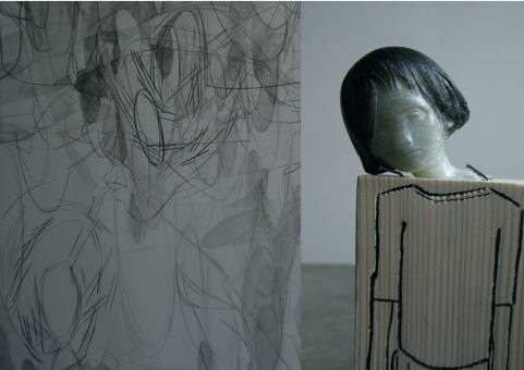 Frammenti e ricomposizioni di un racconto spezzato e in attesa di incastrarsi in un disegno su pannello o di emergere da una superficie cartacea che richiama nei segni la dinamica e il tempo di un'azione. Azione, per certi versi, formulata, definita e completata dalla pittura-disegno di Yoshida Moe. Raffinato contrappunto performativo in grado di acclimatare una serie di posture tra memoria e cancellazione.