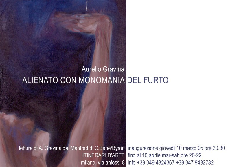 Manfred di Bene/Byron, il guerriero in ginocchio (non ricordo il titolo) di Gericault, sono, ripeto, l’azzardo che mi tranquillizza, il teorema che mi inghiotte e che mi partorisce (questo passaggio dalle viscere teorizza un trasporto anche di escrementi). Il problema è la scelta della variante da adottare, il giusto tono dell’avventura. Il mio è un mediocre adulterio borghese: posseggo i due amati, li tengo separati, godo dei loro favori e li respingo per poi “cercarli umilmente”.