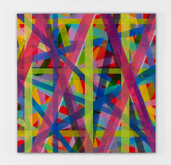 Le nuove tele che compongono la mostra “RGB” mantengono gli elementi caratteristici che rendono peculiare la sua produzione: la struttura a righe e le campiture di colore uniforme. Per Sartorio la pittura è spazio e colore e la riga ne è la sintesi.