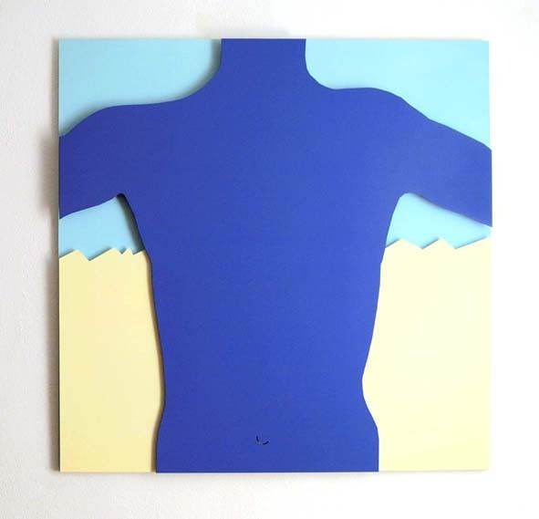 L’artista mette mano, con la complicità del computer, ad un creato artificiale basato sulle combinazioni cromatiche di sagome d’alluminio che evocano paesaggi e figure della natura: dal mostro all’uomo.