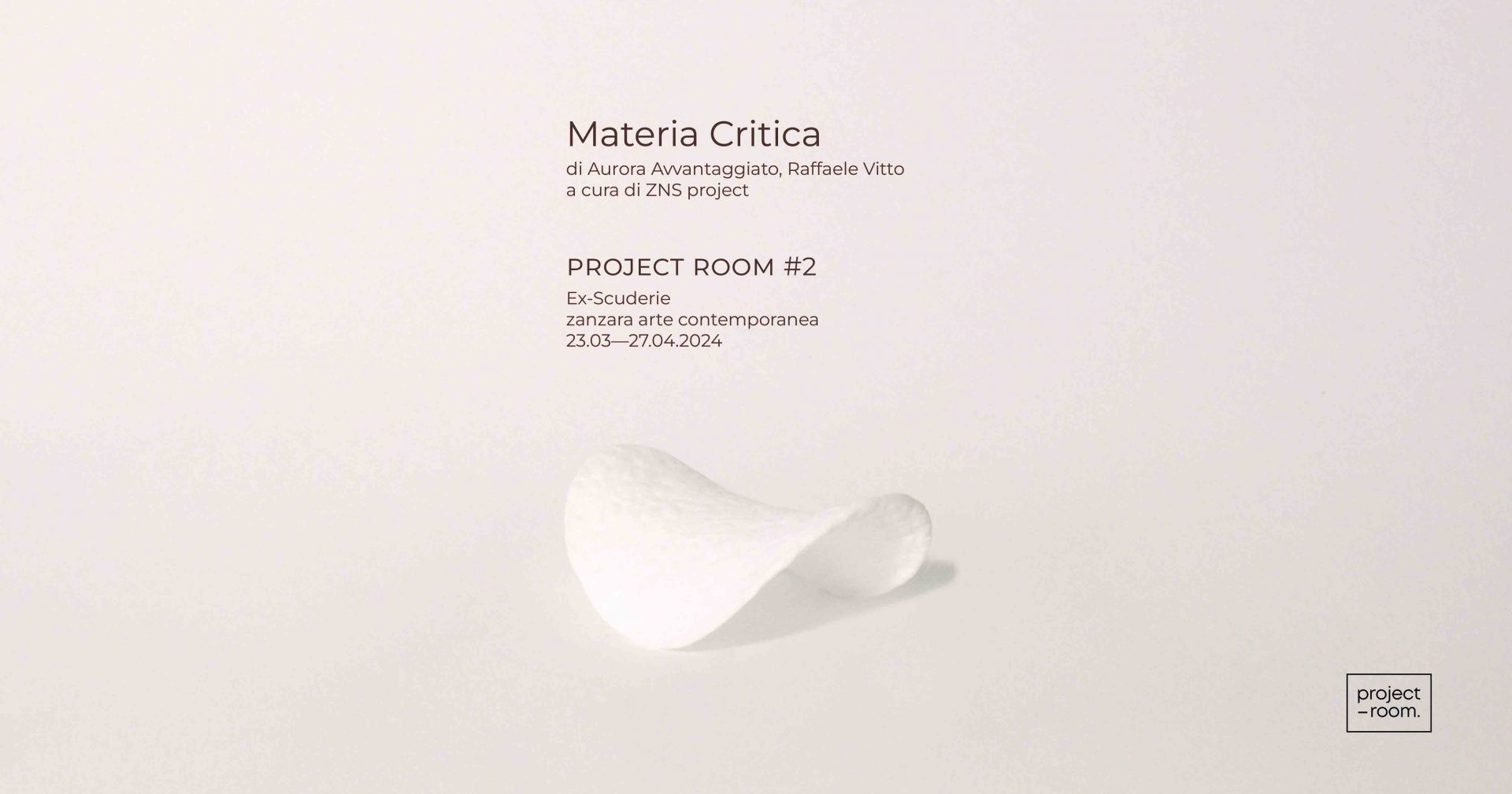 Materia Critica è la project room #2 di zanzara arte contemporanea, risultato di una residenza degli artisti. Esposti ‘Chip’ di Aurora Avvantaggiato, copia in marmo di Carrara dello snack americano e Terre rare di Raffaele Vitto, porzione di suolo finemente lavorata e ‘ultima risorsa disponibile’.