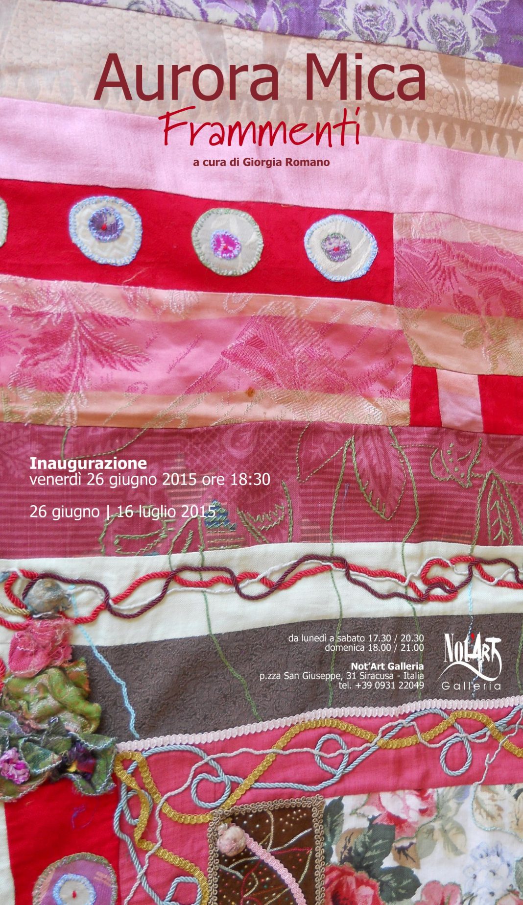 Not’Art Galleria presenta Frammenti, mostra personale di Aurora Mica, a cura di Giorgia Romano, con la collaborazione di Elvira Spriveri. Il vernissage avrà luogo venerdì 26 giugno alle 18.30. Performance inaugurale: voce Maria Longo.