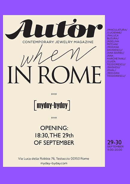 The exhibition AUTOR magazine: when in Rome… brings to Rome the creations of eleven of the most well-known romanian contemporary jewelry makers, explaining, through the larger context of AUTOR Magazine, a world of jewelry with an unexpectedly fresh message.