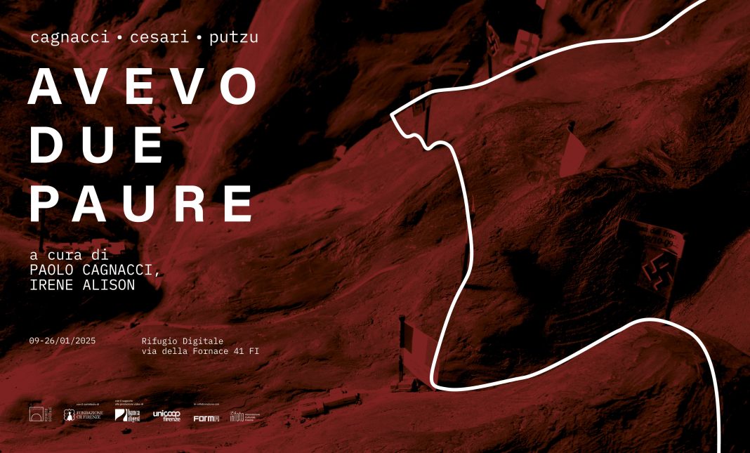 Dal 9 al 26 gennaio 2025 Rifugio Digitale presenta la mostra "Avevo Due Paure" dei fotografi Paolo Cagnacci e Matteo Cesari con video di Theo Putzu a cura di Paolo Cagnacci e Irene Alison. La mostra è stata organizzata in collaborazione con Forma Edizioni e l’Associazione Infoto Firenze e con il contributo di Fondazione CR Firenze. I video sono stati realizzati grazie al supporto di Banca Ifigest e Unicoop Firenze.