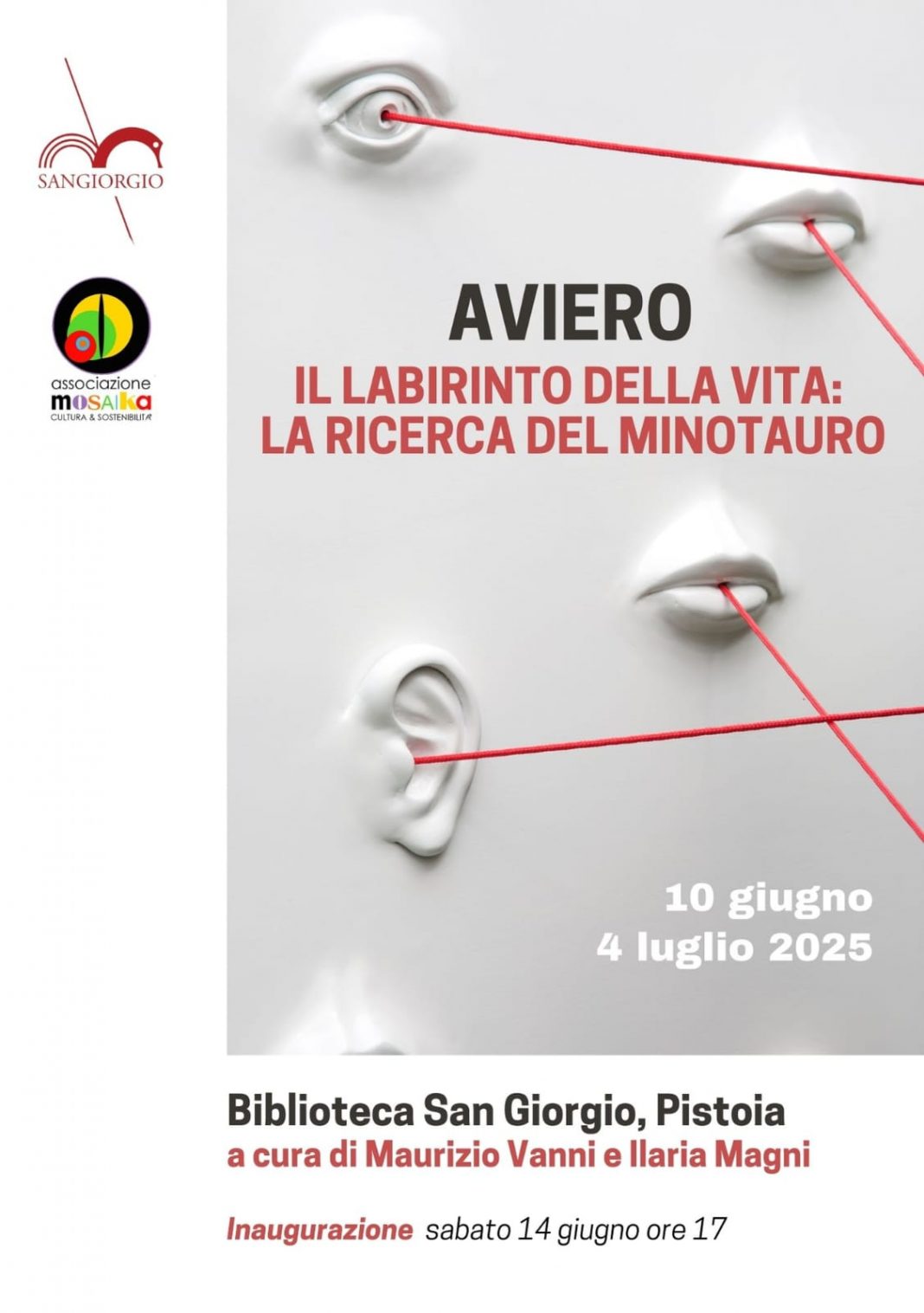 Dal 10 giugno al 4 luglio 2025 la Biblioteca San Giorgio di Pistoia ospiterà la mostra Aviero. Il labirinto della vita: la ricerca del Minotauro, a cura di Maurizio Vanni e Ilaria Magni, prodotta in collaborazione con l’Associazione culturale Mosaika di Verbania. Sculture e dipinti dell’artista toscano ci immergeranno nell’affascinante e dibattuto tema del labirinto e del mito del Minotauro. L’inaugurazione, alla presenza dell’artista, è prevista per sabato 14 giugno alle ore 17.