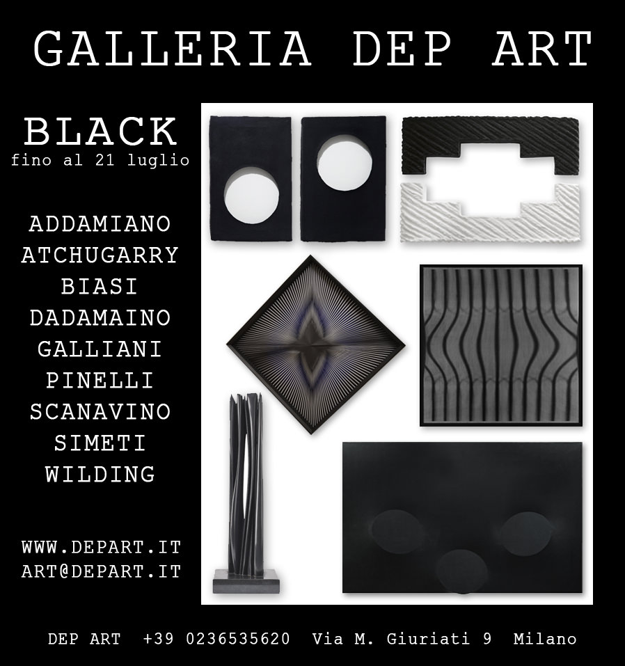 Nove artisti interpretano il nero: Addamiano, Atchugarry, Biasi, Dadamaino, Galliani, Pinelli, Simeti, Scanavino e Wilding. Una selezione di opere dagli Anni ’60 ad oggi. Il nero diventa comune denominatore in una mostra che riunisce artisti dai percorsi spesso diversi che si incontrano, alcuni per la prima volta, in una comune riflessione sugli innumerevoli significati del colore nero.