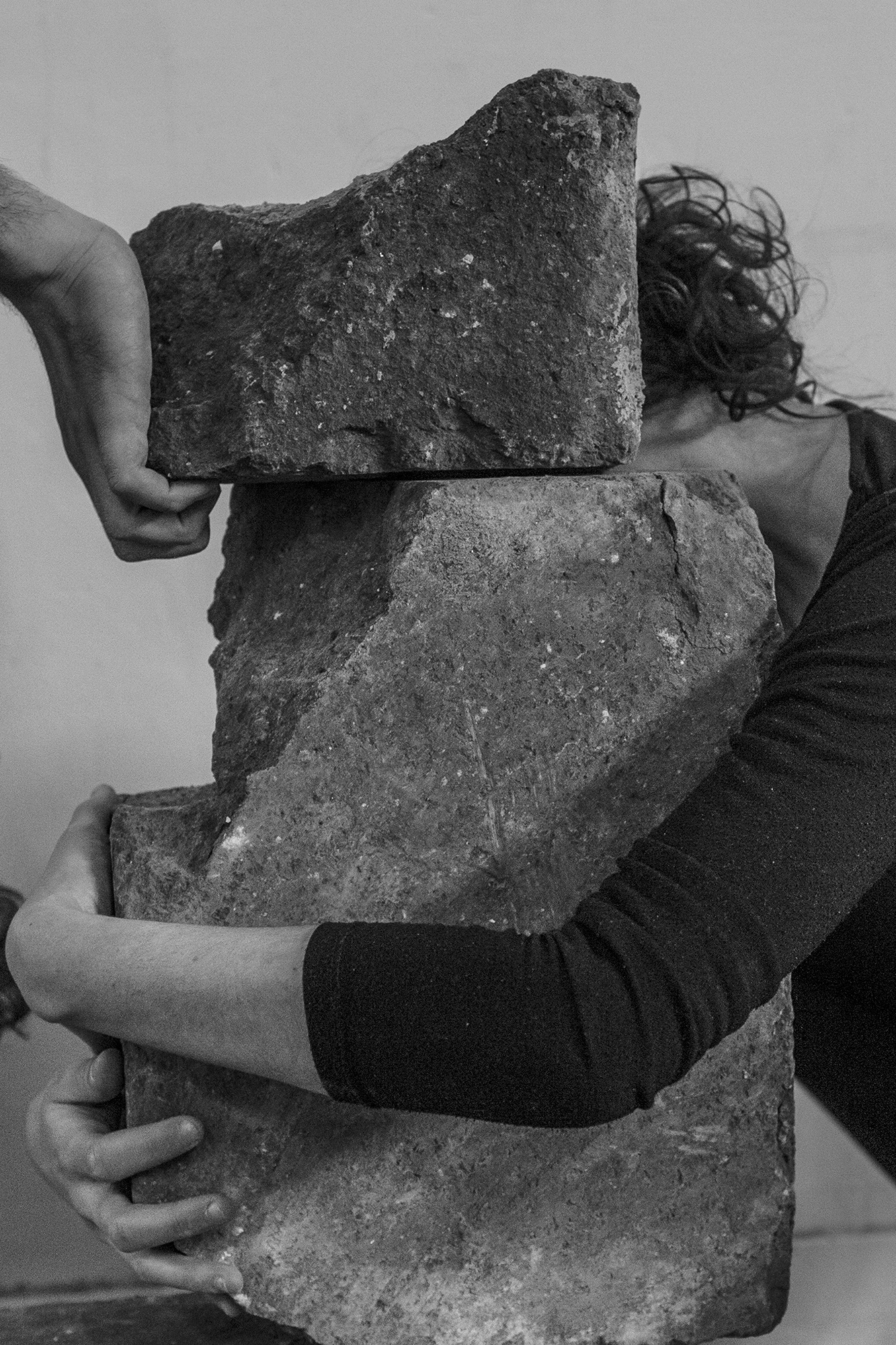 L’artista induce una riflessione sul futuro e sul presente attraverso una sperimentazione artistica basata sulla decostruzione dello spazio, del tempo e del corpo tramite il movimento di grandi pietre di tufo.