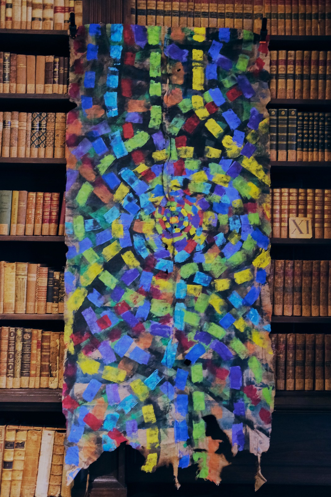 La mostra racconta su binari paralleli la tragedia di questi bambini: le fotografie di Antonella Napoli esaltano l’intensità degli sguardi esaltando le tinte accese dei tessuti del Darfur; l’artista Claudia Melotti usa a supporto la carta di giornale, tele militari con i colori della Pace.