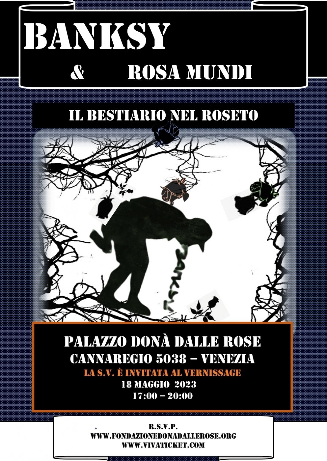 Dal 18 maggio al 20 giugno 2023, il Piano Nobile di Palazzo Donà dalle Rose accoglierà opere originali dello street artist Banksy e della visual artist Rosa Mundi, accomunati dal non aver mai svelato la propria identità. Questa inedita mostra offre uno spaccato inedito sull’arte contemporanea per una riflessione su temi di grande attualità a livello mondiale, dalla guerra all’immigrazione sino alla povertà.