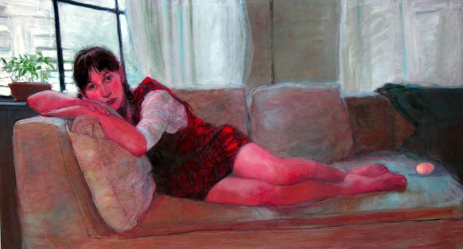 A Barbara, mi pare piaccia anche Balthus; per certe atmosfere un po’ tese (ma senza morbosità); dirò una cosa strana, le piace Balthus per le preparazioni rigide come di muro, che solleticano il velo cromatico, cosicché, per quanto sottile, esso abbia corpo, corpo pittorico. Torna – ma da un’altra parte – la storia della durezza: è consistenza tattile, che riguarda innanzitutto il luogo (a un tempo, luogo della rappresentazione e luogo rappresentato); in esso la figura prende consistenza per stacchi che, senza bisogno di spessori, definiscono le differenze materiali e le connessioni. Impressiona la giustezza degli incastri. Anche la sensibilità diventa oggetto. Barbara può permettersi di ritagliare la figura su fondo bianco, a patto che diventi una parete di luce.