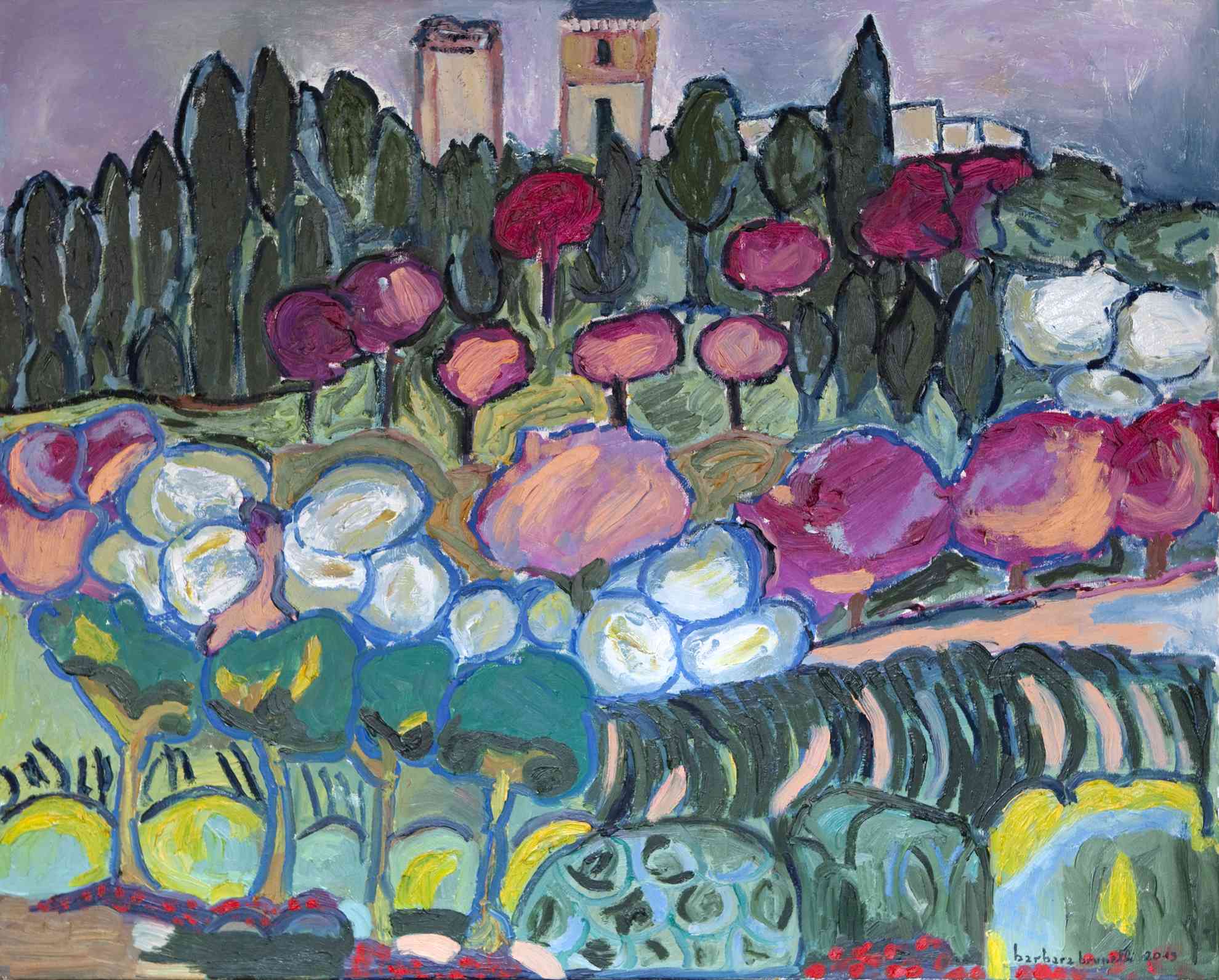 I paesaggi lirici predominanti in questa mostra testimoniano la sua ricerca continua di una serenità raggiunta attraverso la forza dell'intensità coloristica. In questi dipinti il colore verde, nella vasta gamma delle sue tonalità, contrariamente a quanto sosteneva Kandinsky, che lo definiva “pacato e tranquillo, adatto ad un atteggiamento borghese”, appare per quest’artista un colore in movimento che esprime la forza generatrice e rigeneratrice della natura. (L.M.)