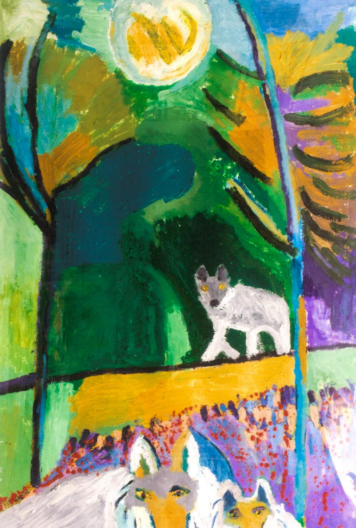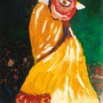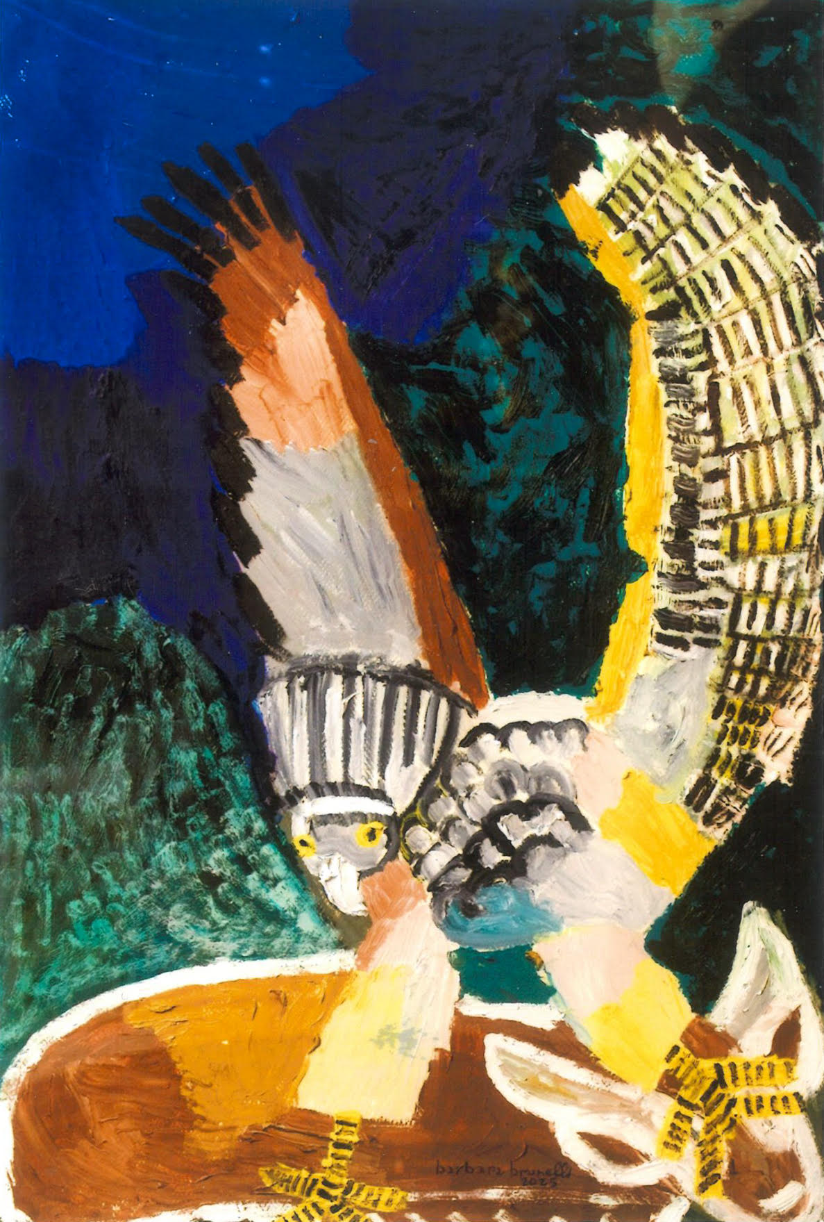 Ciò che colpisce nelle tele di Brunelli è l'urgenza espressiva. Mucche, cavalli, cervi, lupi, falchi: ogni animale diventa portatore di un'energia che non si lascia addomesticare, nemmeno quando si tratta di creature da cortile. E poi i fiori, le composizioni floreali che esplodono in cromie violente, primordiali, lontane da qualsiasi compiacimento decorativo.