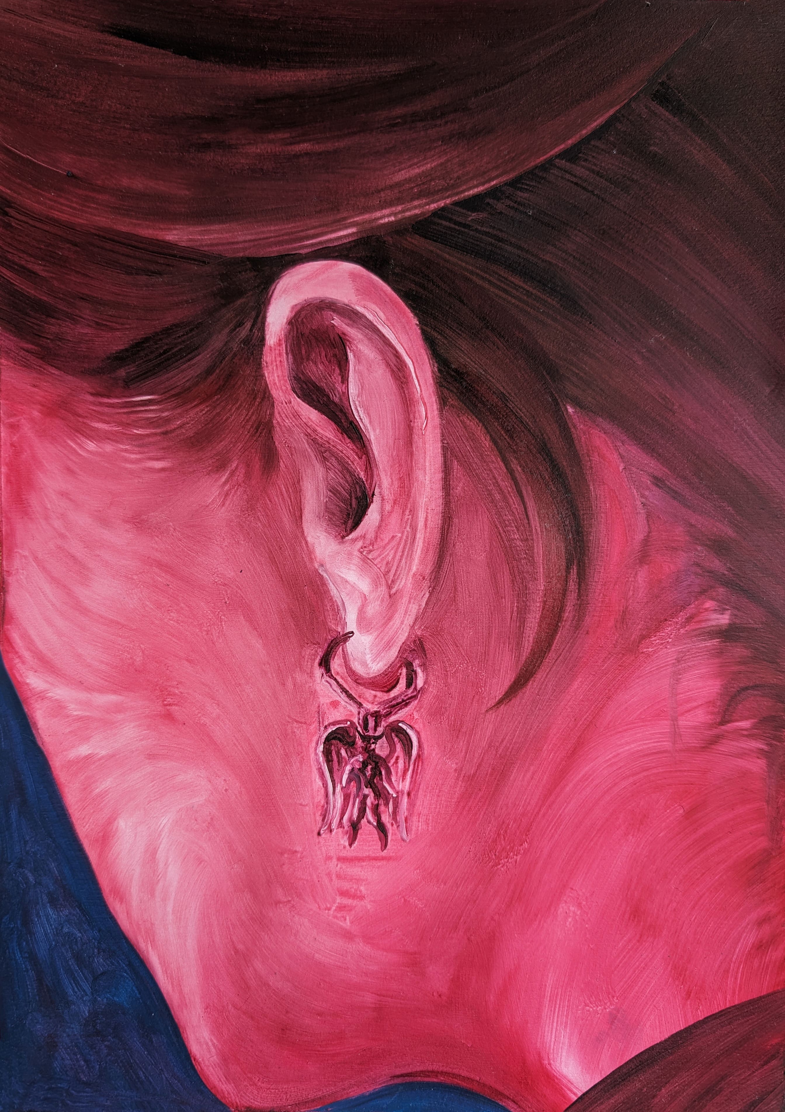 Controfigura presenta un nuovo ciclo di opere su tela incentrate su due aspetti di questa riflessione: la rappresentazione dell'altro come fosse un autoritratto e la possibilità di percepirsi dall'esterno, come fossimo altro.