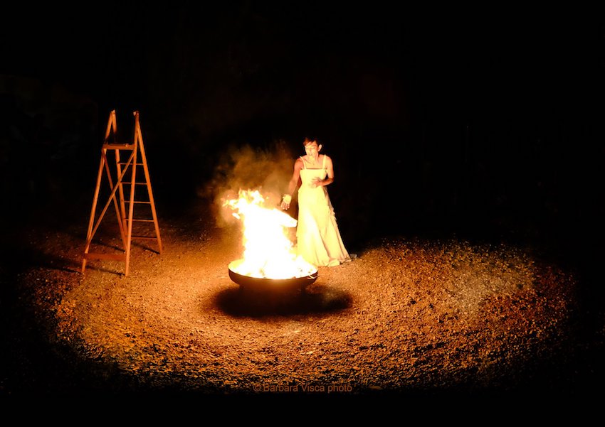 Resoconto arriva al Forte Prenestino, dopo la prima presentazione alla Tevere Art Gallery nel mese di ottobre per la Giornata del Contemporaneo, con una variante generata dalle caratteristiche del luogo stesso. Vestita di bianco in un improbabile vestito da sposa fuori misura non sarà, infatti, solo Barbara Lalle, ma il viaggio della sua anima sarà accompagnato da altre performer che, come l’artista, indosseranno le stesse vesti: ognuna attraverserà una linea di andata/ritorno, accanto ad un fuoco vivificatore e purificatore.