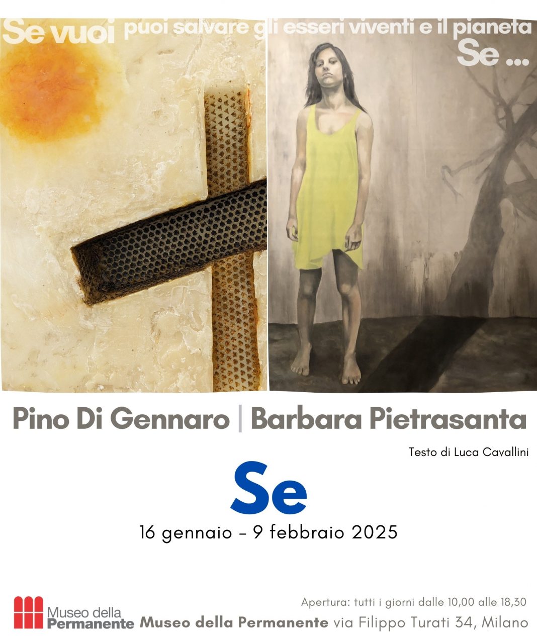 La mostra “Se” ospitata negli spazi della Permanente di Milano dal 16 gennaio al 9 febbraio, si sviluppa intorno al dialogo tra le tematiche affrontate nei percorsi artistici di Barbara Pietrasanta e Pino Di Gennaro.