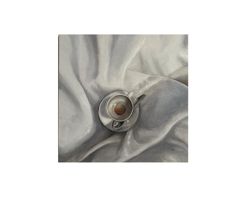 …Accanto c’è sempre la tazzina del caffè che ci risveglia e che ci accompagna come tonico irrinunciabile nella realtà del mondo. Ma la tazzina del caffè è anche l’oggetto dove spesso si è guardato alla ricerca di un pronostico sul futuro: quelle donne sembrano appunto domandarsi quale sarà il proprio destino, in quel giorno che allora comincia ma anche nella dimensione futura dell’esistenza che le aspetta.