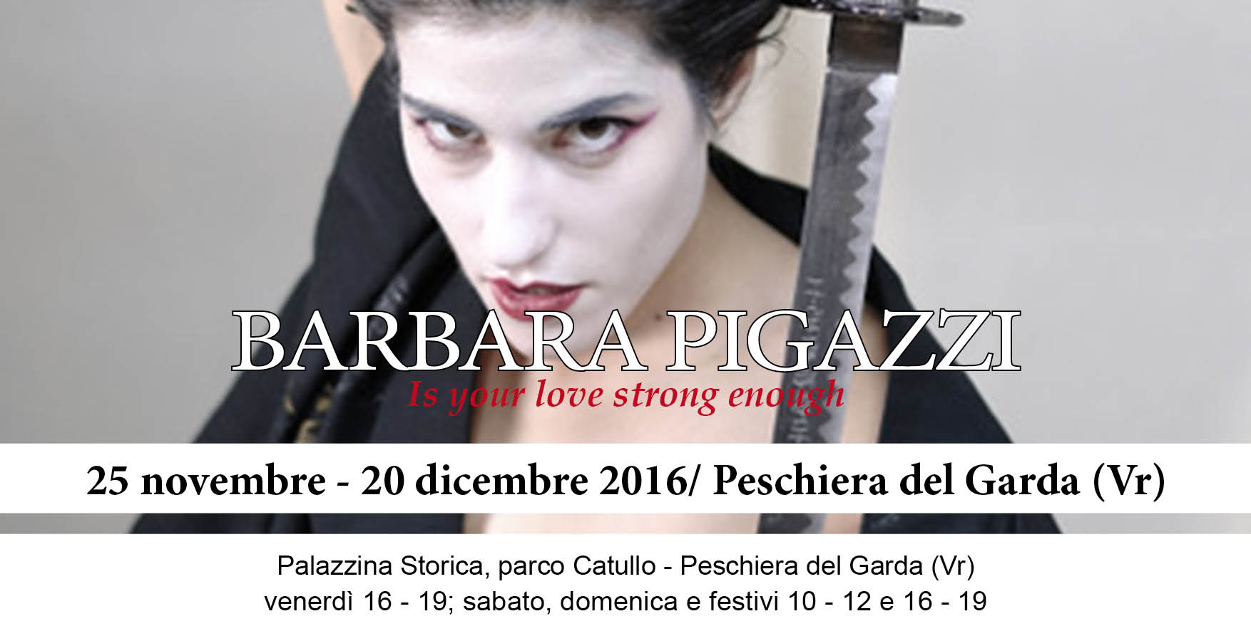 Il Comune di Peschiera del Garda, in occasione della mostra “Vera”, evento contro la violenza sulle donne ideato e curato da Matteo Vanzan, presenta “Is your love strong enough”, mostra personale di Barbara Pigazzi, fotografa padovana, in un percorso espositivo di 15 scatti che raccontano la rinascita da una sofferenza profonda e del duro percorso da affrontare per incontrare una nuova identità, un nuovo cammino.