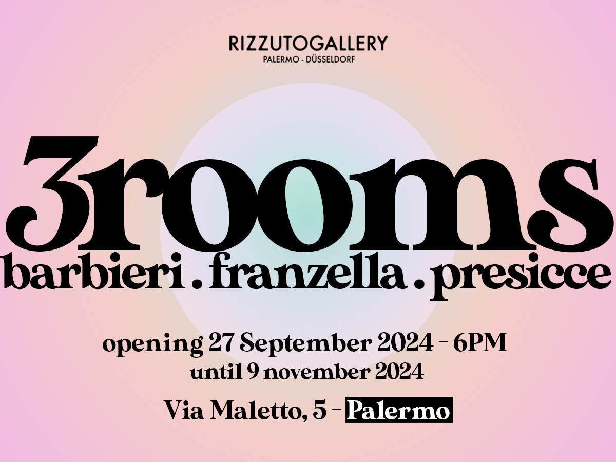 La RizzutoGallery è lieta di presentare 3rooms, con opere di Mattia Barbieri (Brescia, 1985), Daniele Franzella (Palermo, 1978) e Luigi Presicce (Porto Cesareo, 1976), che sarà inaugurata venerdì 27 settembre 2024 alle ore 18.00.