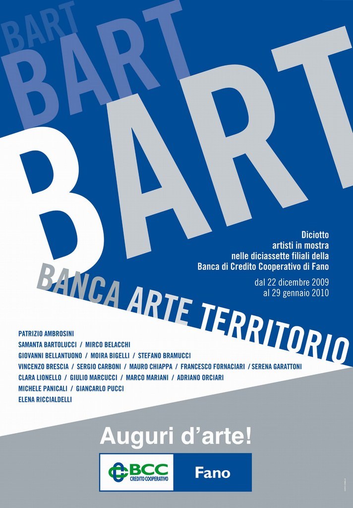 Seconda edizione di Bart (Banca Arte e Territorio), la mostra di arte contemporanea organizzata dalla BCC di Fano, che rende protagonisti nel periodo delle festività natalizie gli artisti del territorio.