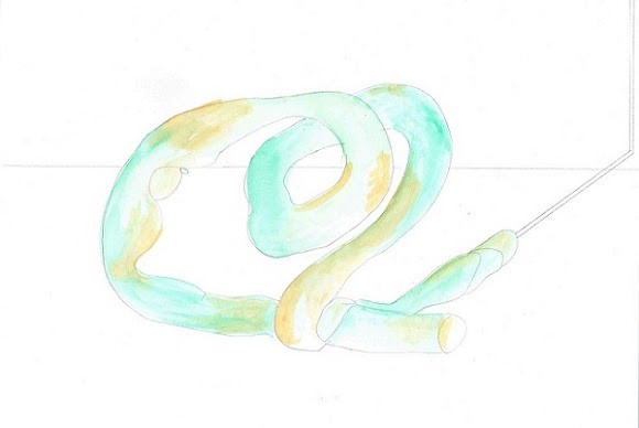 La cera è stata modellata in una contorsione tridimensionale, arrivando ad assomigliare quasi ad un sistema digerente annodato o un Nastro di Möbius intestinale.