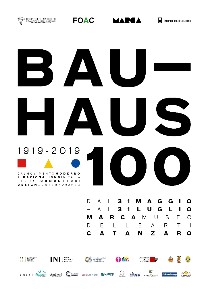Nell’ambito delle iniziative promosse dall’Ordine degli Architetti PPC della Provincia di Catanzaro per lo sviluppo e la divulgazione della cultura artistica e architettonica, di concerto con la Fondazione Rocco Guglielmo di Catanzaro e con la Fondazione Architetti Catanzaro, dal 31 maggio al 31 luglio 2019 al Museo MARCA di Catanzaro, si terrà la mostra “Bauhaus 100 – Dal movimento moderno al razionalismo in Italia, fino al concetto di design contemporaneo”.