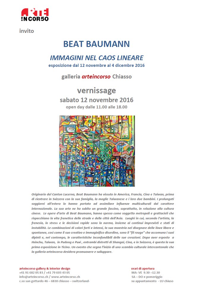 un artista come Beat Baumann. Un artista creativo ed instancabile che segue la sua voce interiore e afferma un