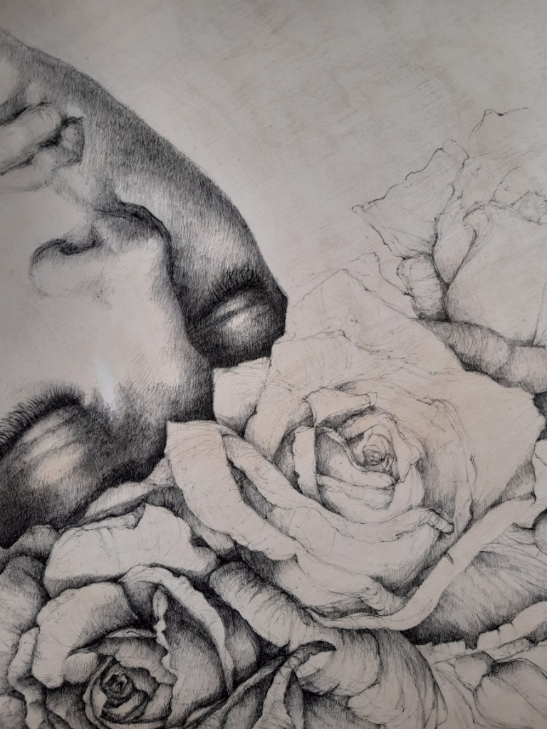 “Ho sempre pensato che le donne fossero superiori agli uomini, te ne puoi accorgere o meno, però è un dato di fatto; è lì, si piazza MANU MILITARI nelle situazioni più disparate et voilà appare un’opera, che essa sia letteraria,lirica,fisica,artistica, sportiva… non fa differenza… Le donne, specialmente artiste, credo non abbiano bisogno dell’ennesimo maschio che vuole mostrare la sua opportunistica benevolenza, hanno bisogno di mostrare le loro capacità creative senza essere inutilmente sottoposte a sguardi stupiti o commenti di convenienza; tutto ciò di cui necessitano è lo stupore per le loro opere e la crescita nel lavoro per meriti. Ecco perché apprezzai anni fa ciò che avevo visto in un’opera di Cleonice Gioia. Quello che mi aveva colpito superava le immagini riportate sulla tela; in quella creazione non vedevo solo il primo tempo come in un film, ma anche il secondo, il terzo e un finale a sorpresa. Lo stupore si ripropose in seguito anche di fronte ad un disegno della Germana Brizio, la composizione eseguita tutta a penna biro poteva inizialmente sembrare un déjà vu, ma era solo un inganno della mente. Io che per anni avevo rifiutato l’accademia con i suoi formalismi, provavo piacere nel guardare la bellezza puntigliosa di quell’opera.