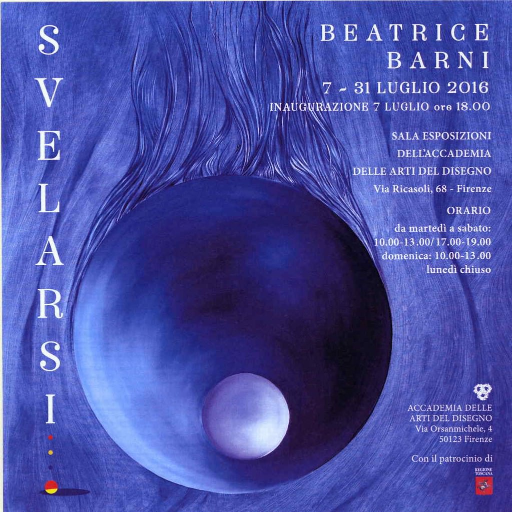 Dal 7 al 31 luglio 2016 l’Accademia delle Arti del Disegno di Firenze, presso la Sala delle Esposizioni in Via Ricasoli n.68, angolo Piazza San Marco, ospita la mostra monografica di Beatrice Barni dal titolo “Svelarsi”.