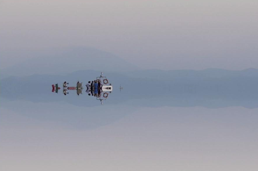 In Imago, alcuni luoghi sembrano immersi nell’acqua, come sorpresi dall’alta marea, altri ancora degli enormi pop up. L’esperienza del viaggio, una parentesi di spazio e tempo altra rispetto al vivere quotidiano, diventa mediazione fantastica fra visibile e invisibile