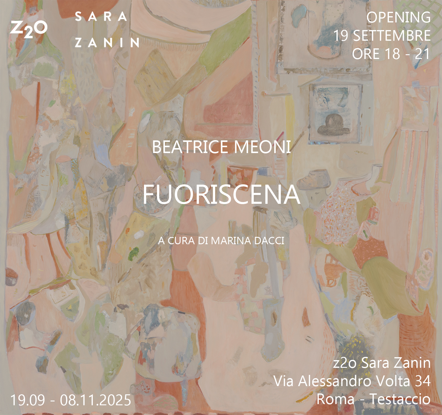 z2o Sara Zanin è lieta di presentare Fuoriscena, mostra personale di Beatrice Meoni (Firenze, 1960), a cura di Marina Dacci. Dopo la sua prima mostra del 2022, Luce ovunque, ospitata nello spazio z2o Project, l’artista torna ora a confrontarsi con gli spazi della sede principale di via Alessandro Volta 34.