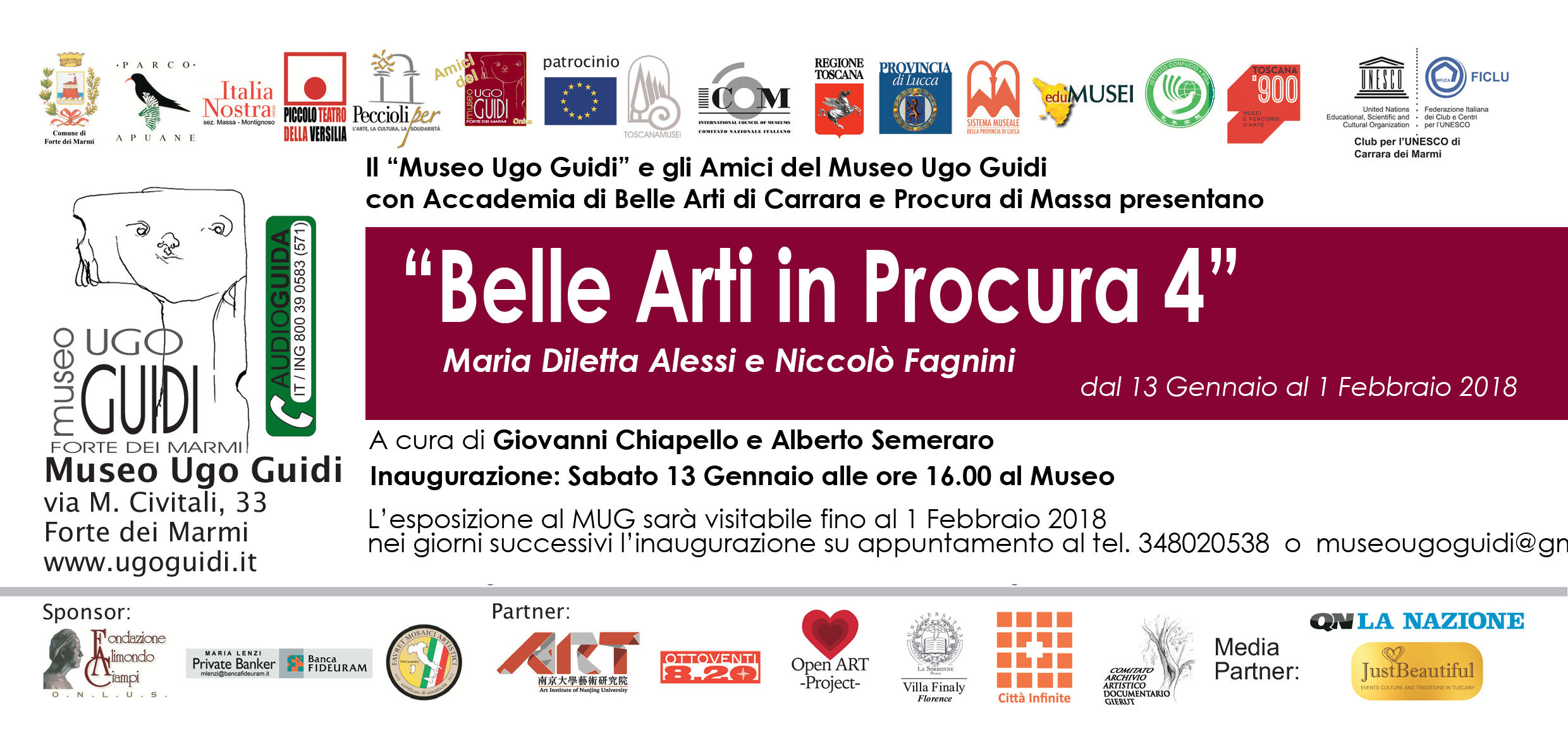 Media Partner: IB Communication, QN LA NAZIONE, Arte33 Versilia, Just Beautiful, Forte 100 Rivista, Italia Italy, Arte in Toscana, BestVersilia.com, Culturadelmarmo.it, LifeBeyondTourism, Inpuntadipennablog.it,Acculturarsi.blogspot.it,Agendaeventi.com,LaParentesi della Scrittura.