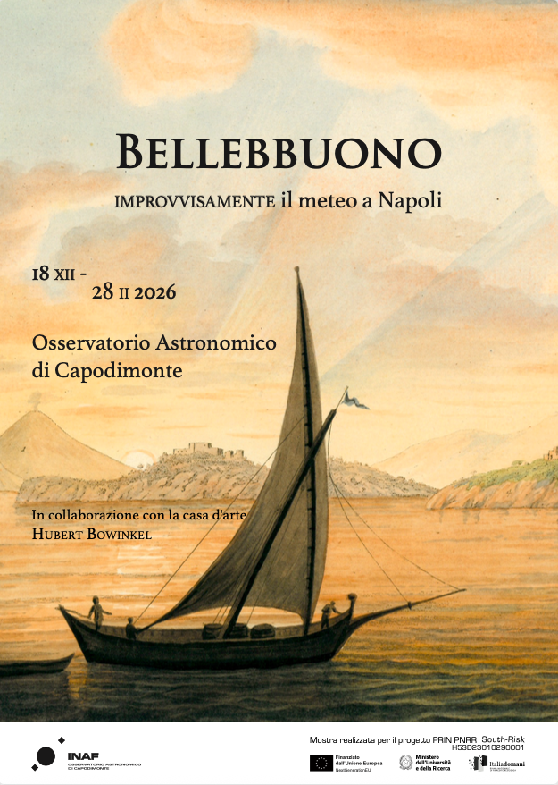 A Napoli il tempo cambia all’improvviso e il linguaggio lo sa: bellebbuono è l’espressione napoletana che restituisce la sorpresa di un cielo mutevole. Questa mostra trasforma quell’improvviso in un percorso tra meteorologia, nella sua accezione più ampia, cultura e memoria. La città vive da sempre in dialogo con il cielo e con la Terra, sospesa tra stupore e rigore scientifico. Bellebbuono: improvvisamente il meteo a Napoli, realizzata nell’ambito del progetto PRIN-PNRR South Rish, racconta questa storia attraverso tre secoli di osservazioni, strumenti e opere d’arte.
