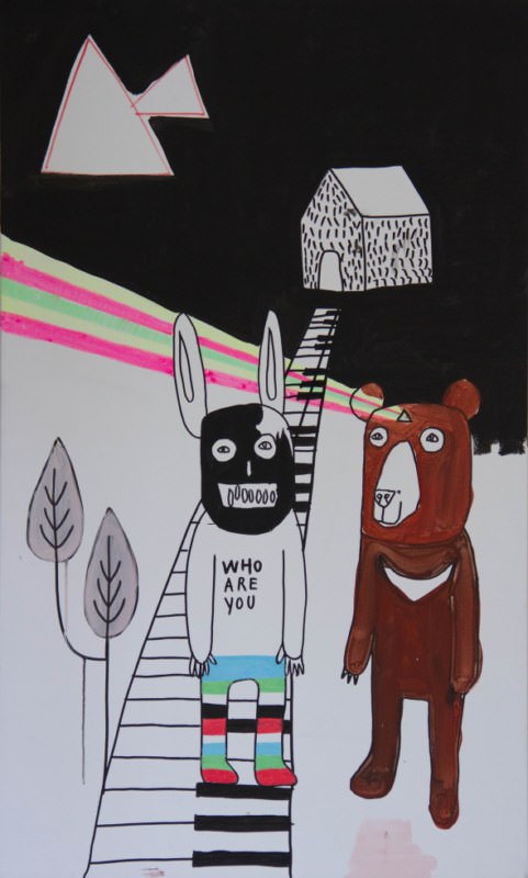 Come scrive il curatore, i tre artisti «attingono liberamente sia dal mondo dei fumetti e dei cartoons, sia dai piani alti delle arti figurative, dove si trovano le stanze dei musei, sia dai territori underground della street art e della controcultura giovanile». Se Matteo Beltrami e Fosco Grisendi, pur nella diversità dei linguaggi, riducono l’immagine ad una sigla grafica sostenuta da una scelta cromatica aggressiva, Manuel Portioli fa uso di una sintassi espressiva più ricercata, in cui il segno si muove con disinvoltura tra finito e non finito.