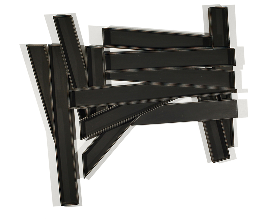 Ogni linea di Ormenese è in grado di connettersi con tutto ciò che la circonda, per armonizzarlo ed equilibrarlo, per sporgersi ancora più in là, squilibrandosi nuovamente in ogni imprevista posizione, per poter ripartire ancora verso indefinite e imprevedibili connessioni. Ormenese ha sempre rifiutato ogni concetto di ambiente esterno, inteso come luogo inerte: tutto ciò che era concepito come sfondo, parete, spazio, diviene parte integrante di una tangibile visibilità, in una corrispondenza strutturale sorretta dalle medesime forze. Anche i legni degli anni settanta, bruciati o bruniti, sono fatti di incastri e vettori, che intercettano e dirigono le forze in cui si manifestano. Gli spazi della parete non sono vuoti, non sono esterni, sono parti dell’opera, sono interni/esterni, luoghi di attraversamento e di solidità di una spazialità integrale. Ormai non ha davvero più senso parlare di supporto su cui dipingere, di materiale con cui fare, perché il supporto, il materiale, nel suo farsi, è la pittura stessa. Ormai non c’è più differenza tra scultura e pittura, perché dalla parete le opere hanno già mosso il primo passo verso lo spazio tridimensionale, proprio in mezzo a noi. È la massima auto-affermazione della superficie, della forma, della plastica, il gesto più alto e sublime dell’individualità: il divenire altro.
