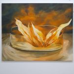 e la cruda realtà. È infatti centrale la serie Thaumàzein GLI USTIONATI, titolo con il quale Giampaoli guarda all’originale significato di trauma. Con antichi riferimenti al sogno, il trauma è anche generatore di meraviglia e indagine, concepito nella storia come origine di ogni ricerca, della filosofia stessa. Le opere della serie diventano finestre su scene simboliche di metamorfosi in cui il fuoco vive e agisce, bendaggi e ferite si trasformano su sfondi inquietanti. La luce emerge come protagonista comune dei lavori grazie ai modi in cui l’artista la maschera, modella e stravolge in funzione di elementi visivi di forte impatto: notturni si alternano a pastose scene che sembrano di altri mondi/tempi.
