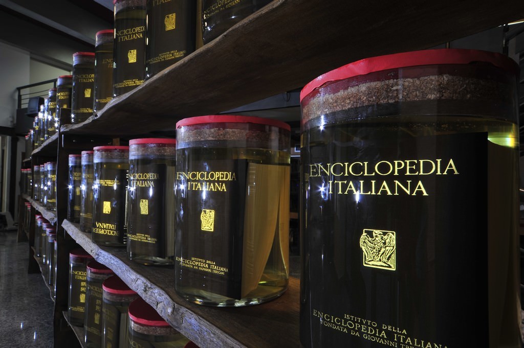 Scrive Umberto Croppi nel catalogo: “Potremmo dedicare questa installazione, quest’opera, quest’evento a Salvatore Settis e a tutti quelli che considerano ogni forma d’uso, di contatto, di godimento, perfino ogni sguardo un affronto alla sacralità dell’oggetto. Non è un’azione esemplare, una provocazione intellettuale. Non è nemmeno un gesto d’artista, Marcucci non arriva a prendersi così sul serio, tanto che il suo lavoro principale continua ad essere un altro. Proprio per tutto questo la sua opera aspira a essere qualcosa di più: un’opera d’arte”. E aggiunge Marco Ferrante: “Per Benedetto Marcucci, nella teoria generale del libro sott’olio, il progetto della Treccani racchiude tutte le caratteristiche fondanti, ma in forma larga. È un’idea, ma diventa simbolica: ai tempi della digitalizzazione, niente più di una enciclopedia in volumi dà la misura del feticismo culturale della modernità, dunque va sott’olio perché la si usa sempre meno. Inoltre, non è semplicemente un oggetto, ma un intero scaffale di oggetti.