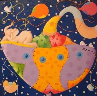 Francesconi ci invita nel suo “mondo improbabile” attraverso un duplice coinvolgimento: lo scritto e il dipinto. Storie piccole, ma complete, per dare la percezione di vite diverse