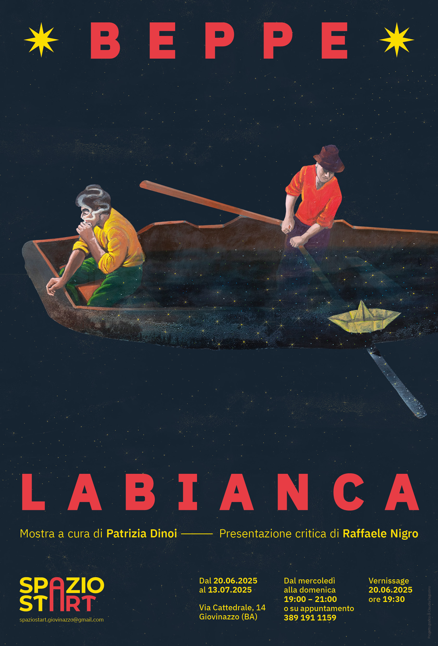 Venerdì 20 giugno 2025 alle ore 19, presso la suggestiva galleria SPAZIO START nel centro storico di Giovinazzo (via Cattedrale n.14), si inaugura la Mostra Personale dell’artista Beppe Labianca, a cura di Patrizia Dinoi. Presenterà la mostra lo scrittore Raffaele Nigro.