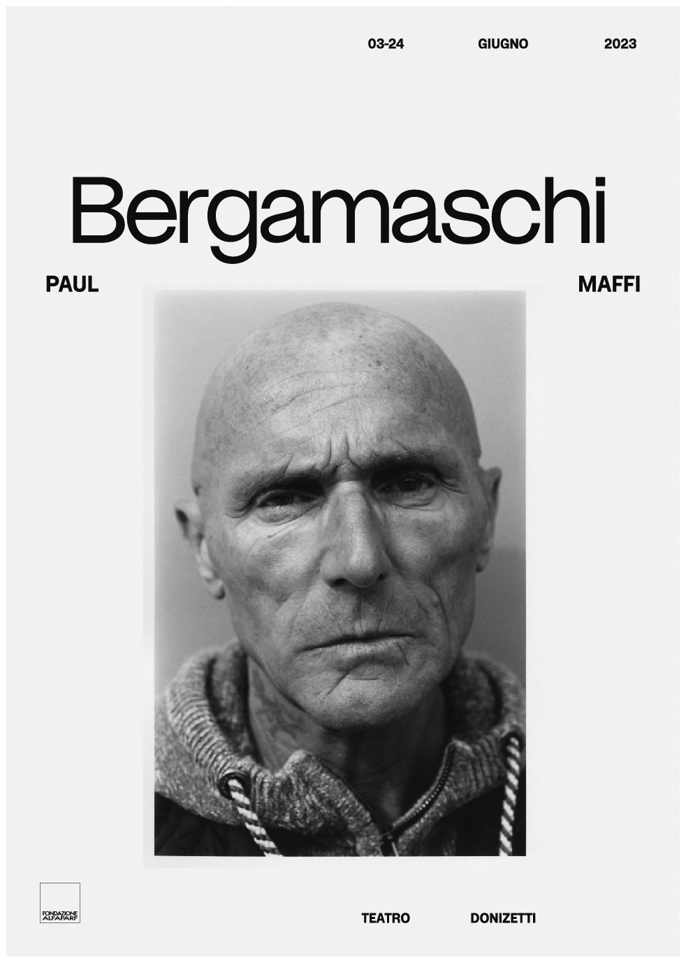 Ideata e realizzata in occasione di Bergamo Brescia Capitale della Cultura 2023, esposta nelle sale del Teatro Donizetti in concomitanza con la manifestazione Donizetti Night, Bergamaschi presenta una galleria di circa quaranta ritratti in bianco e nero e a colori, attraverso cui il fotografo di moda Paul Maffi, newyorkese di adozione ma bergamasco di origine, racconta e celebra lo spirito della città, indagandone la natura più intima e profonda. Un affresco moderno di una Bergamo laboriosa, contemporanea, che sa essere riservata ma accogliente, che attraverso l’inclusione e la dignità del lavoro può e vuole dare spazio a tutti e della diversità fa una forza.