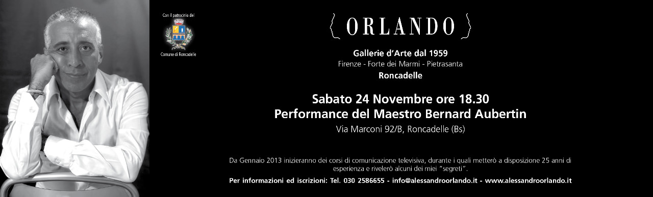 Sabato 24 novembre alle ore 18:30 presso la galleria Orlando di via Marconi 92/B (Roncadelle) il maestro Bernard Aubertin eseguirà una ferformance personale.