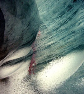 Con un atto violento Thomas, dopo aver terminato la scalata, colpisce il gelo, cioè l’acqua solida, la ferisce, disegna la traccia della sua ferita col colore rosso, la lascia sanguinare e la fotografa