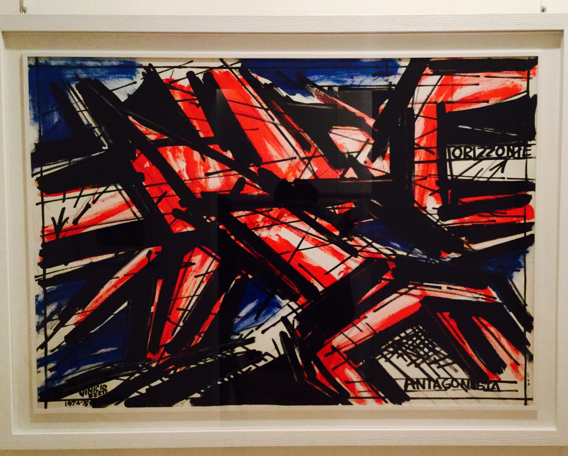 Vinicio Berti continuò a sviluppare e ampliare le possibilità espressive, scaturite dal Manifesto, nei contenuti e nelle forme. Segue, quindi, la fase definita dallo stesso artista di “Espansione dell’astrattismo classico” (1951-55): essa è caratterizzata da una grafia più libera e da una maggiore evidenza di collegamenti tra linee e piani di colore. Tra il 1947 e il 1950 un rigoroso impianto di geometria classica continua a sostenere le opere, dal ciclo delle “Cittadelle ostili” (1955-56) all’”Omaggio a Einstein”, sorta di viaggio nel relativismo spazio-temporale. Seguirono, poi, i cicli delle Brecce nel tempo (1955-58) e dell’Avventuroso astrale (1959-65), ispirato alle prime imprese spaziali con l’importante opera del 1963, “Utopia del tempo H3” vincitrice del premio Il Fiorino, emblema dell’intera concezione bertiana dell’uomo consapevole delle sue immense capacità espansive. A partire dal 1966 è la volta delle “Cittadelle di resistenza”, “Partenza zero”, “Geometria volumetrica”, “Realtà antagonista”, sino a “Dal basso in alto” (1981), preludio alle più recenti “Visioni verso l’alto”, che rappresentano la fase estrema dello sviluppo dell’astrazione classica nel confronto con l’incessante divenire della realtà contemporanea.