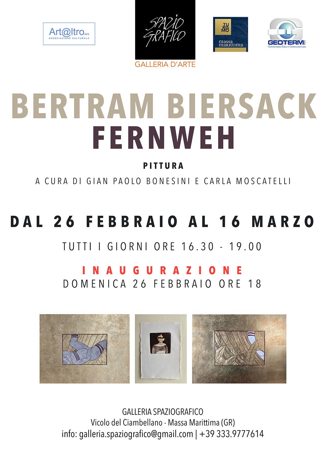 Artista legato da una lunga collaborazione con Galleria Spaziografico, Bertram Biersack presenta in questa mostra una serie di opere incisorie e di tele lavorate ad acrilico che raccontano la sua Fernweh.