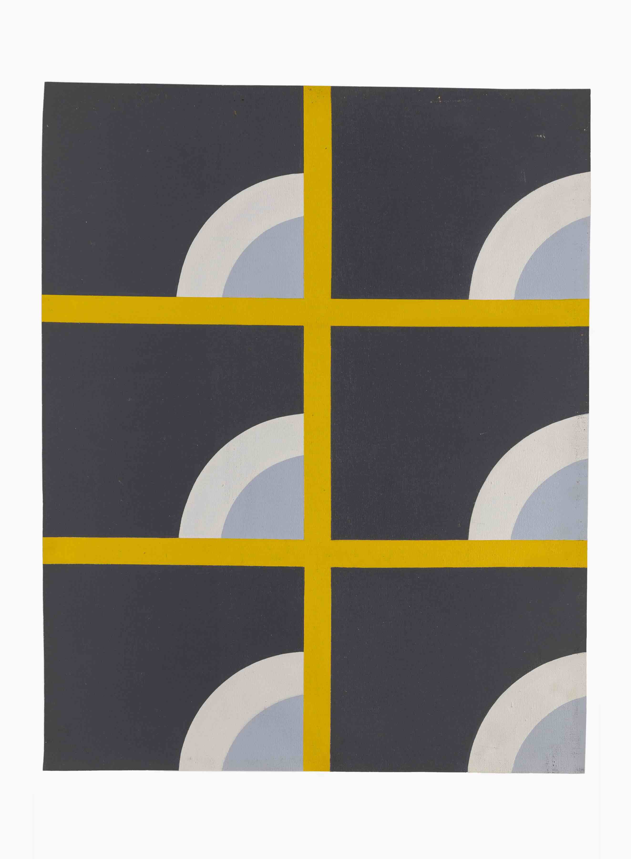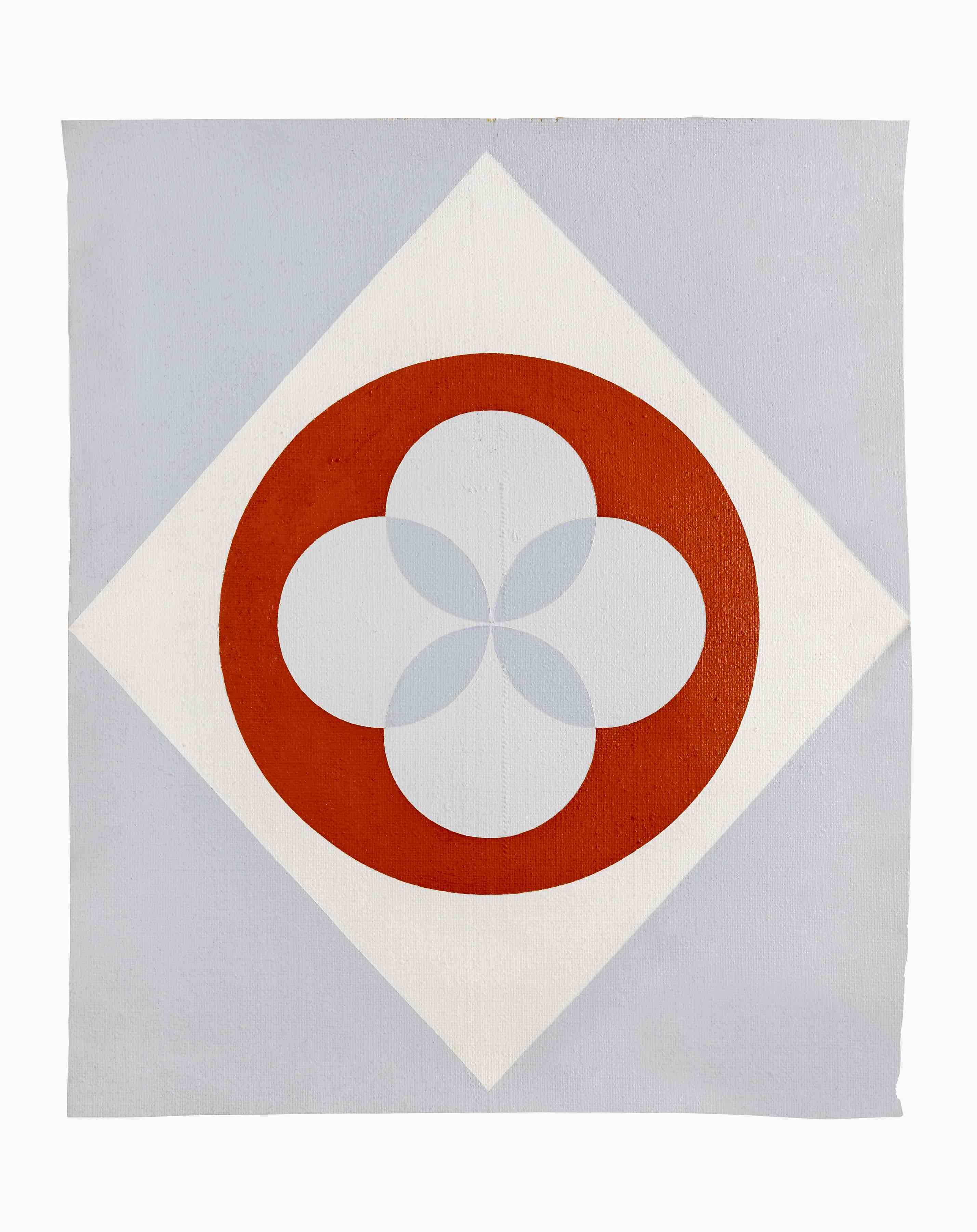 Il percorso espositivo in Galleria inizia con le tele geometriche realizzate all’inizio degli anni Settanta (1971-1973), dove sono formalizzate strutture geometriche che rivelano il suo interesse per la psicologia junghiana e la filosofia orientale. Questi acrilici prevalentemente sui toni del grigio-azzurro, da lei chiamati “pitture atonali”, vengono esposti per la prima volta alla Galleria San Fedele nel 1972 e coincidono con il suo lancio nel mondo dell’arte. Nella sua Dichiarazione di poetica, l’artista definisce il cerchio “partenza”, “archetipo magico”, “eterno perfetto”, che si spezza e scompone dividendosi in giochi percettivi.