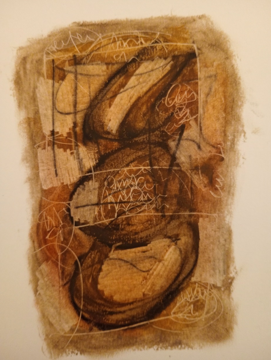 “Biagio Cepollaro, scrittore da sempre e non da poco pittore, porta nella città d’origine una doppia sequenza di opere che è la prosecuzione di lavori presentati lo scorso aprile allo Spazio Coviello di Milano, in un’esposizione intitolata Nostos….. La prima sequenza consiste in “tecniche miste” che sono narrazioni numerate. La seconda sequenza è fatta di pastelli anch’essi numerati.” Si tratta di sei tele di media dimensione e 12 pastelli più piccoli sotto il titolo: Nostos a Napoli. Biagio Cepollaro, nato a Napoli, dopo aver vissuto e lavorato per quaranta anni a Milano, adesso si accinge a tornare a vivere dove si è formato ed ha vissuto ragazzo. “Si compie dunque un ritorno: il guadagno dell’origine è punto di partenza delle intraprese artistiche che pretendono di aggiungere significato a un mondo reale che soltanto una tradizione del segno è capace di portare sui teatri della percezione.” Scrive Eugenio Lucrezi nel suo testo ,che introduce la mostra. Nelle tele colori caldi, solari, piccole figure come incise in un nero che ricorda il legno, evocano forme ancestrali, un vivere felice, un contesto naturale. E’ dunque questa l’origine , ricomposta dal desiderio e vagheggiata?