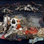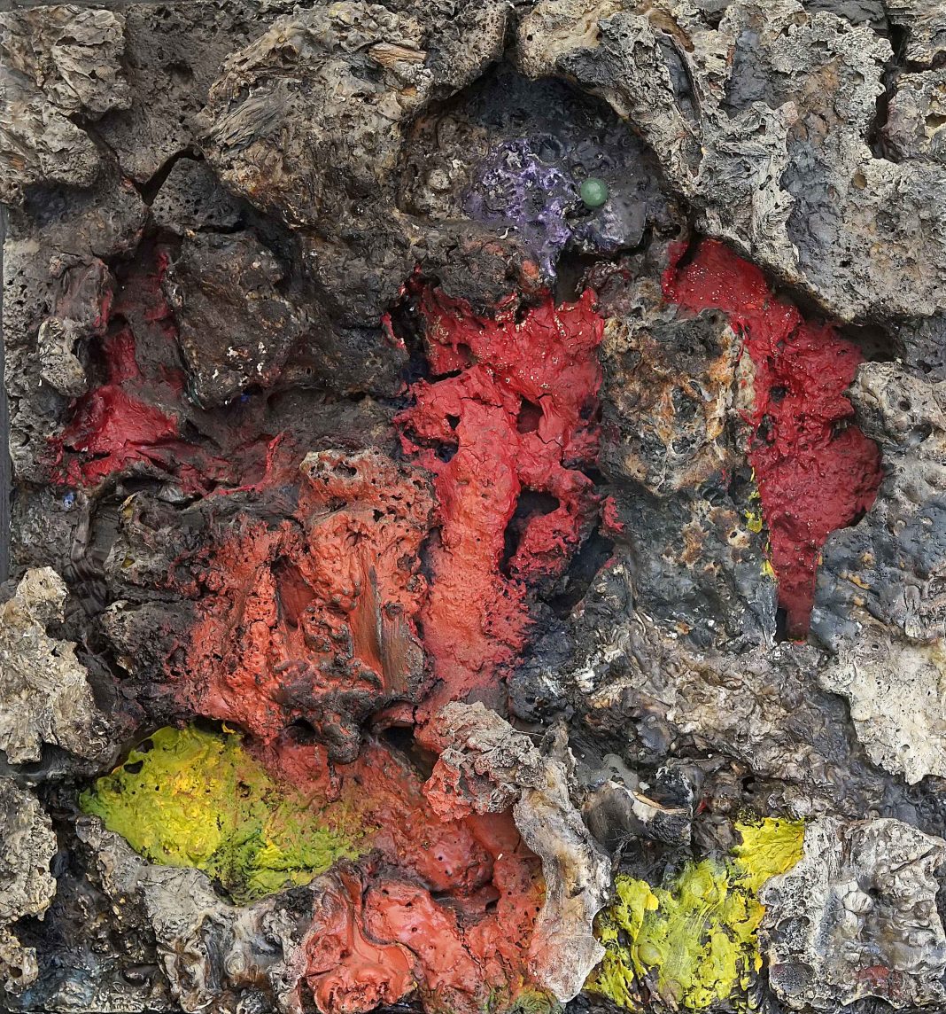 Se infatti i pastelli sono colore e luce, i materici sono materia e ombra: un microcosmo, una natura ricreata. Sono ricami di materia colata, di parti sporgenti, ammassi di plastiche combuste con il cannello e lavorate ancora incandescenti, per ricreare rocce, ghiacciai, fondali marini, fango e terra calpestata. L’artista bruciava strati su strati di plastiche e colature di vinavil mentre le esalazioni nere ardevano nei suoi polmoni. La cosa più terribile è che sapeva a cosa stesse andando incontro…Ma il dono dell’Arte non si può fermare: solo così nascono i veri capolavori…”.