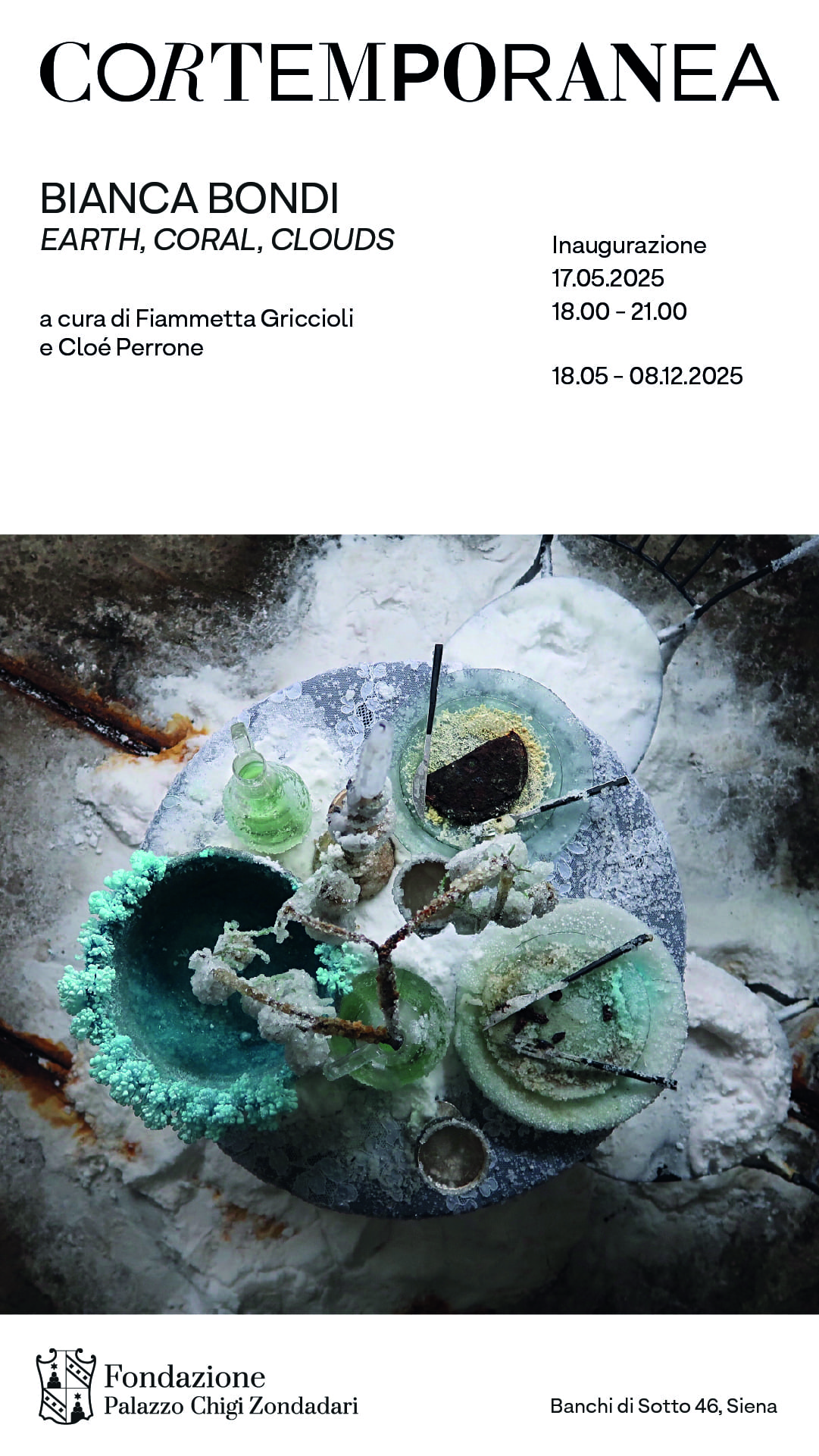 In occasione della quarta edizione di CORTEMPORANEA, il 17 maggio 2025 inaugura Earth, Coral, Clouds, la prima mostra personale in Italia dell’artista sudafricana Bianca Bondi, attualmente borsista presso La Villa Medici a Roma 2024-25 e nominata per il Prix Marcel Duchamp 2025.